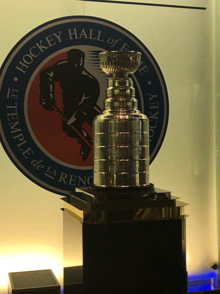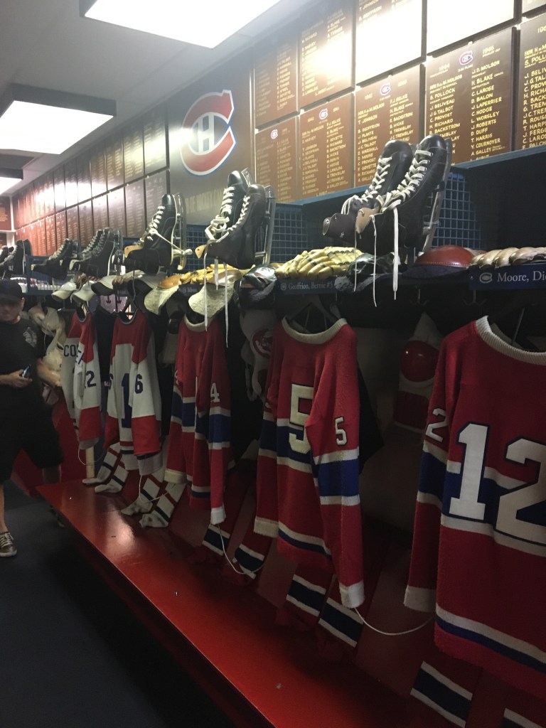 The Hall also had a complete mockup of the Canadiens’ locker room from the old Montreal Forum, which is a great way for fans to have their own “pregame experience”. Pretty neat to see the old skates and jerseys hanging in the lockers and look up on the wall and see names like Jean Beliveau and Jacques Plante from those great Montreal teams.