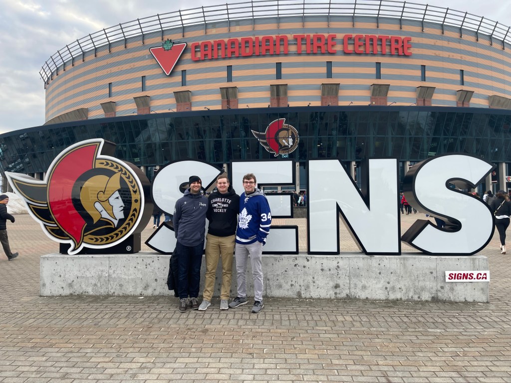 The Senators PA announcer even kindly mentioned my Tour and my fundraising during our lap, and I couldn’t help but grin from ear to ear. It was simply magical. We got a chance to see the last minutes of the second period (and two Toronto goals) up close behind the net, got to take the ice at an NHL game, so to speak. Got to celebrate this amazing journey and the great mission of Hockey Fights Cancer. And I got to do it with two wonderful friends.