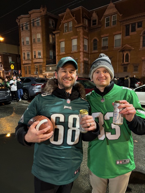Dominic brought his football and we just tossed it around for an hour in between sips of Yuengling Lights. Random people all over Broad Street jumped in for catches and throws, re-enacting their favorite Jalen Hurts passes from hours before. It was magical, and there’s nothing quite like a herd of well-lubricated Philadelphia sports fans to celebrate with. I was actually there, witnessing the absolute spectacle that is Broad Street after an Eagles Super Bowl win. And I couldn’t have done it without the gentle arm-twisting from Dominic.